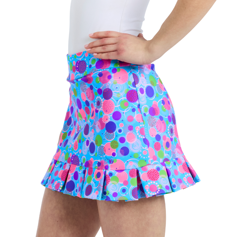 Just like the skorts, our dresses will graduate length by size and should measure the same as the skorts from the natural waist. The following measurements are the lengths from shoulder to hem.